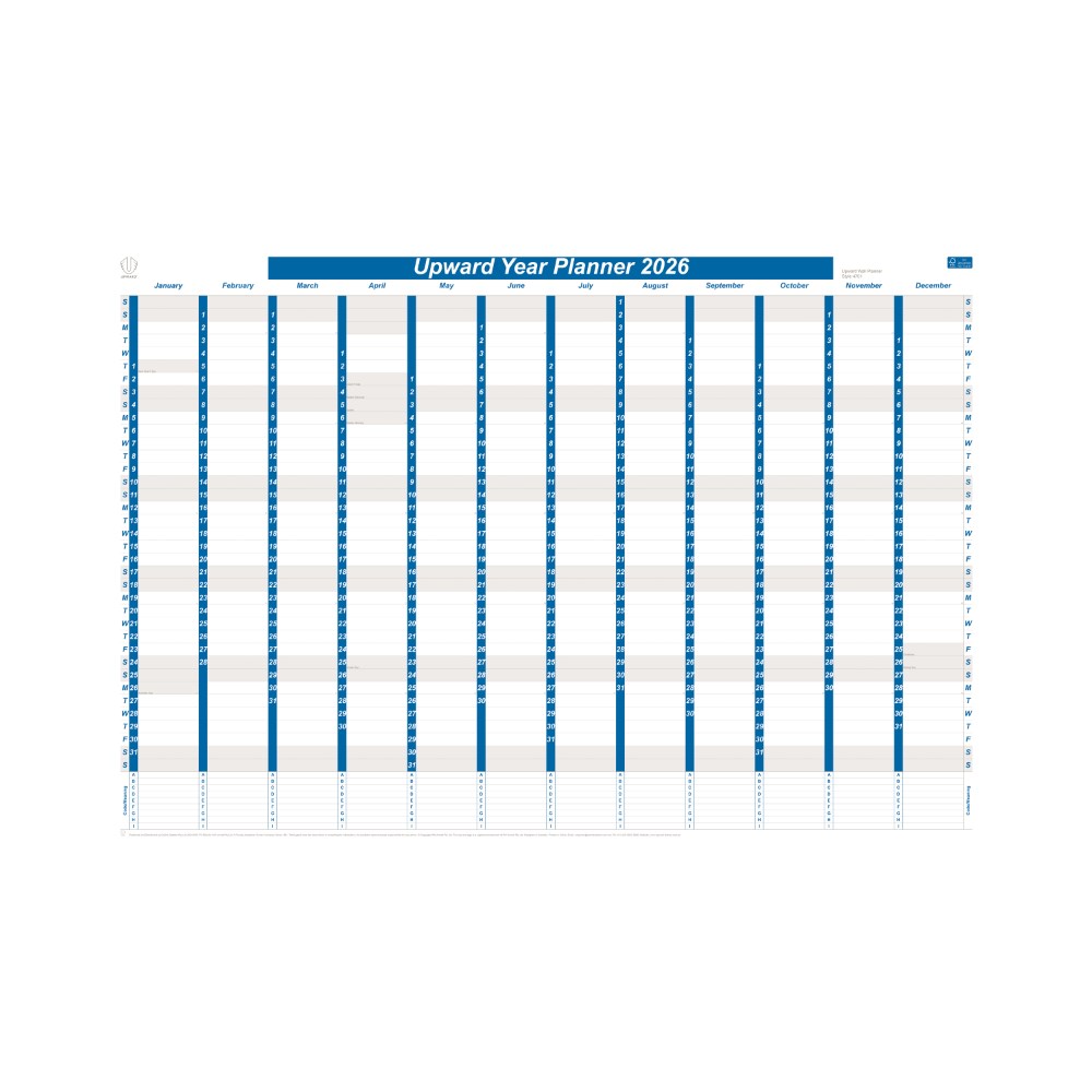 Upward Dated Year Wall Planner 1005 x 685mm Blue