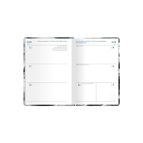 • The week to view layout provides a convenient overview of your week, while the section sewn binding ensures your diary will stay in perfect condition.
