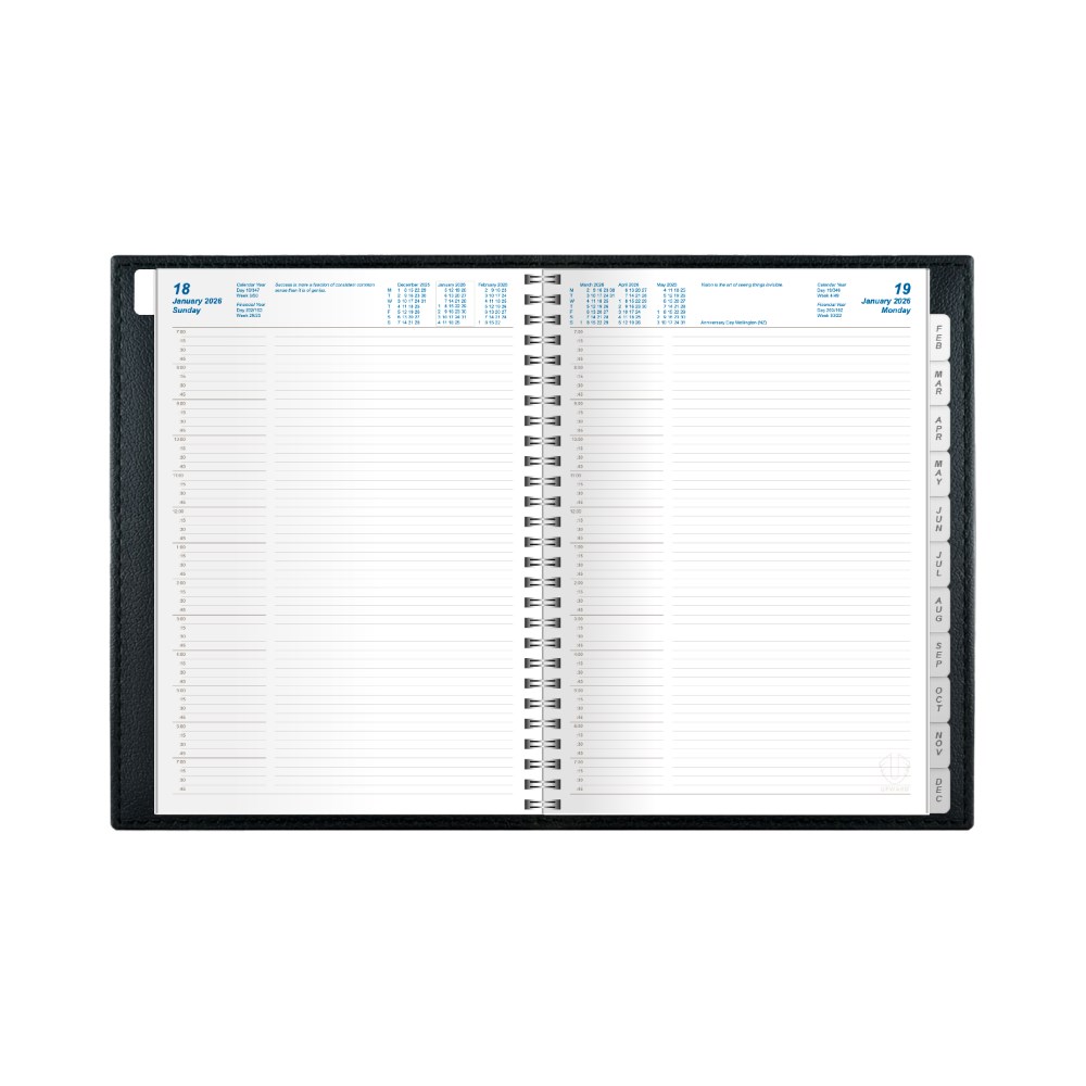 • This top of the range desk diary is perfect for everyday use in the office or at home. Lay flat opening.
