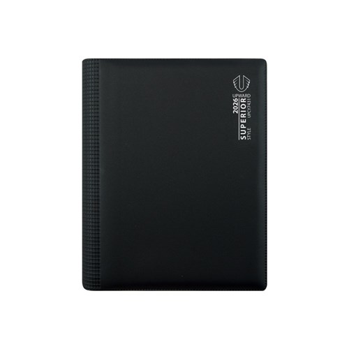 • Featuring a padded, phthalate free, PVC cover, pockets for storing business cards and wire-o binding to allow the diary to lie completely flat when open.
