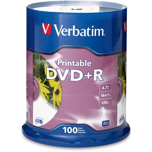 Verbatim Recordable DVD+R 120Min 4.7GB 16X Printable Inkjet Pack Of 100 White