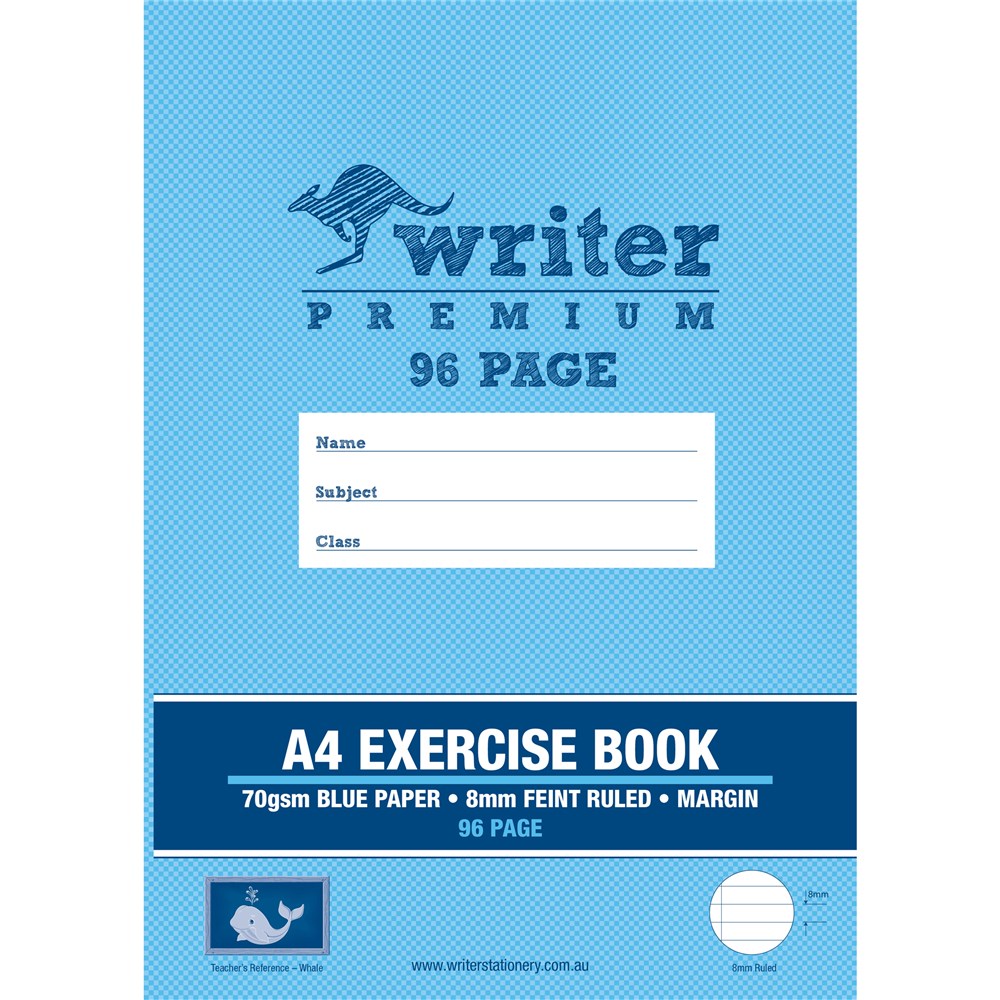 Writer Premium Exercise Book A4 8mm 70gsm With Margin 96 Page Blue Paper-Whale