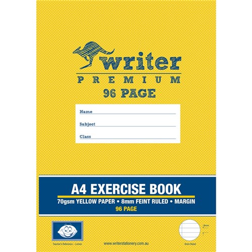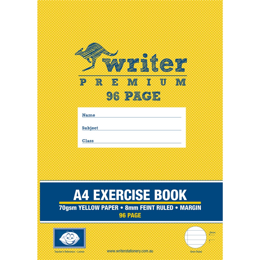 Writer Premium Exercise Book A4 8mm 70gsm With Margin 96 Page Yellow Paper-Lemon