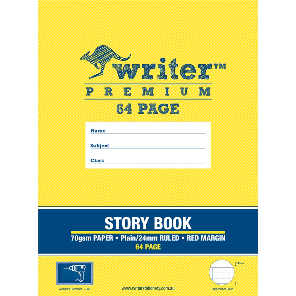 Writer Premium Story Book 330x240mm 64 Page Plain & 24mm Ruled W Margin 100gsm